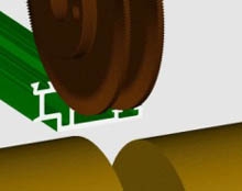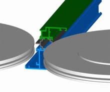 使用滚花轮在待连接的内外挤压型材槽口内制作0.15-0.30毫米长的"齿状结构",这些型材将通过隔热条连接构成框架。在压接过程中,这些"齿状结构"将咬合隔热条,确保复合型材获得足够的剪切强度。